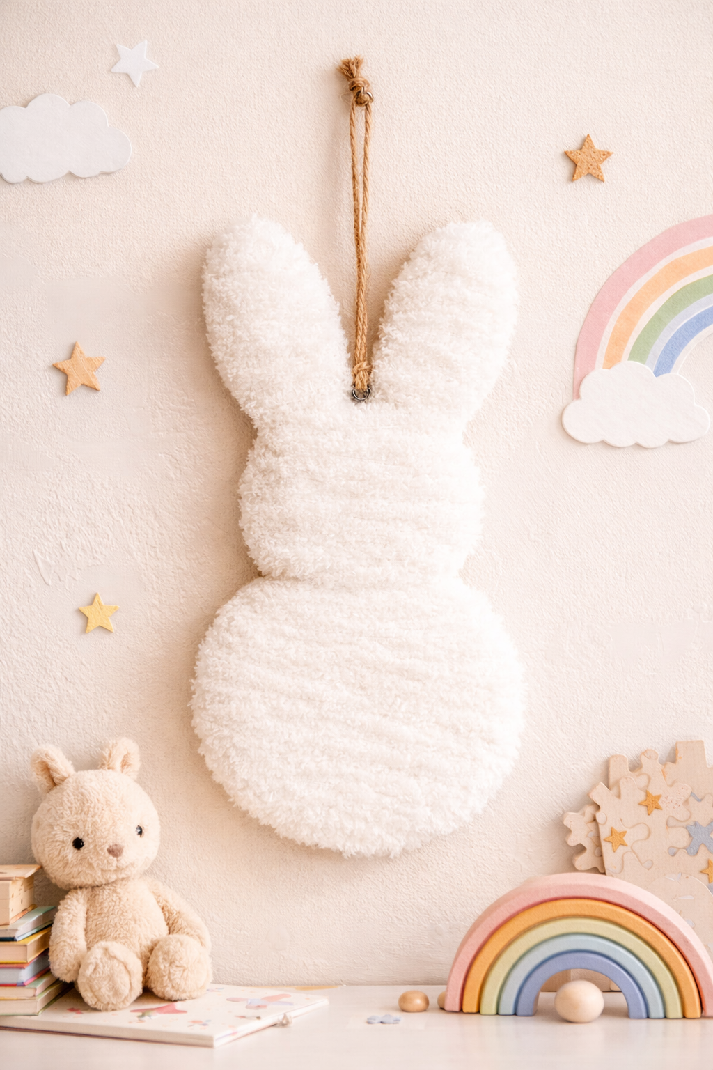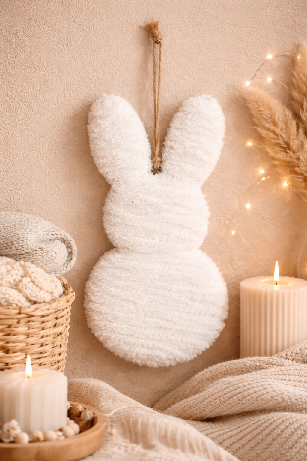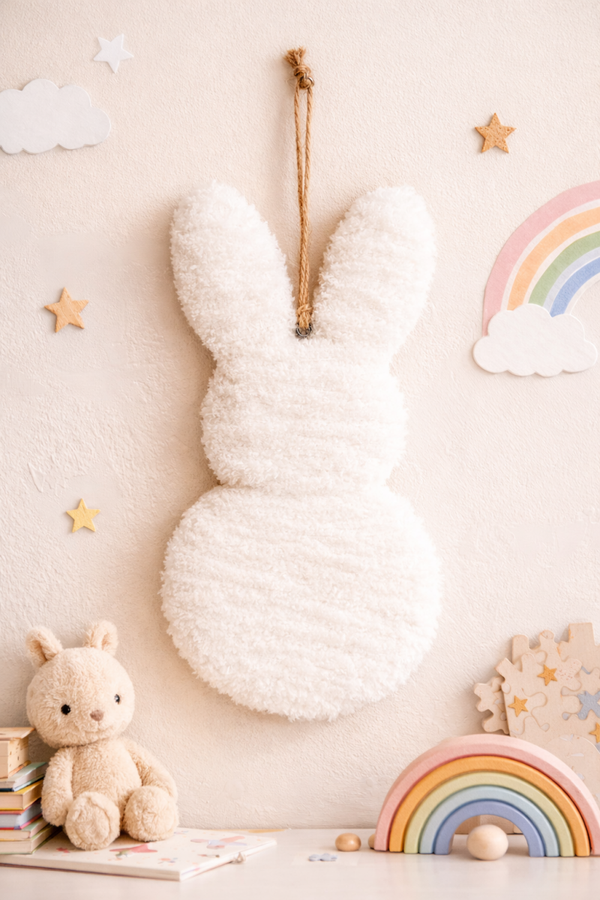 Handgemaakte Fluffy Konijnenhanger | Minimalistische paasdecoratie (±30 cm)